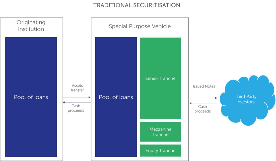 For traditional securitisations, the transfer of the underlying exposures to an SPV must be genuine, with no material clawback provisions and no retained control by the originator.