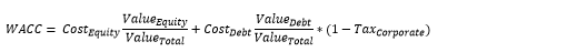 A keen observer may recognize that the WACC cannot be really calculated without knowing the value of the equity in the first place – the very thing we are looking for. For this reason, a calculation is performed in a loop, starting with the book debt/equity ratio, each time getting more precise. The cost/return on debt is taken from the yields on the last issued debt (if substantial enough). The cost/return on an equity may be calculated for instance by CAPM: